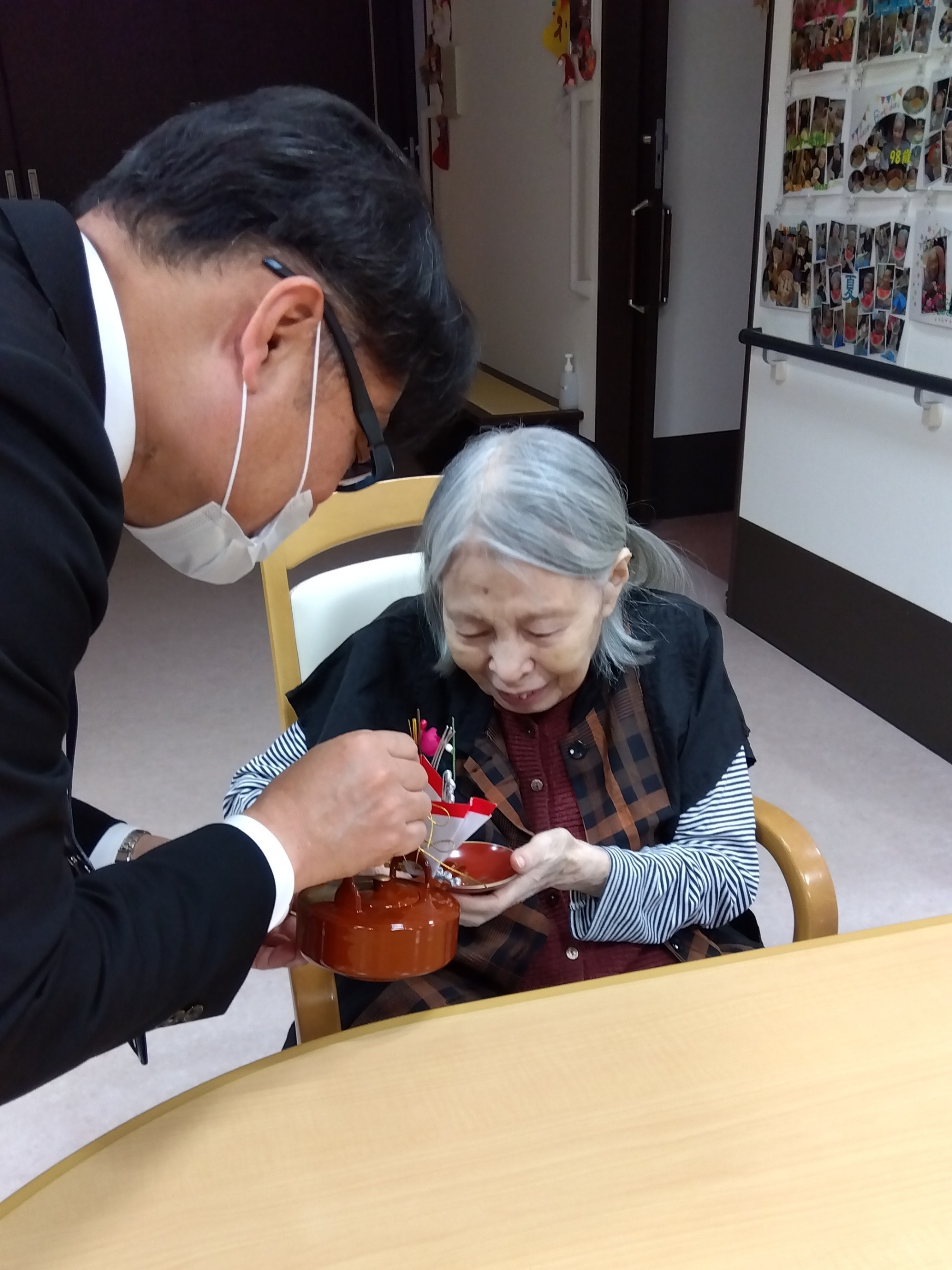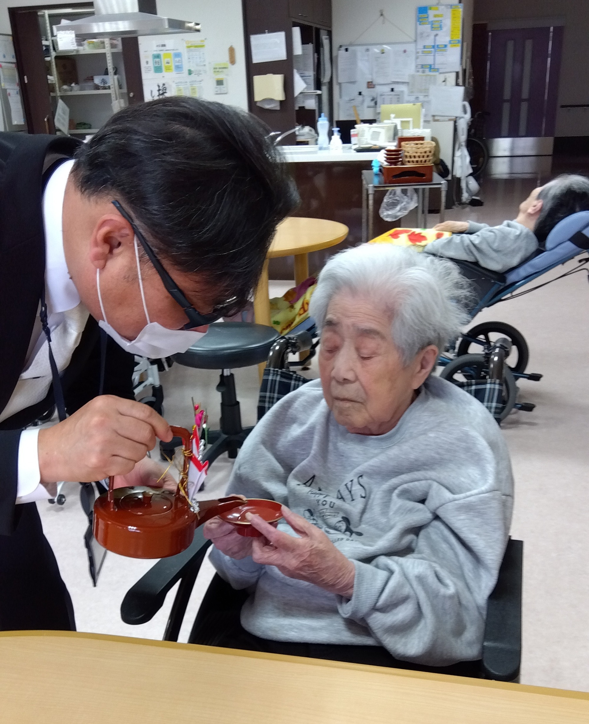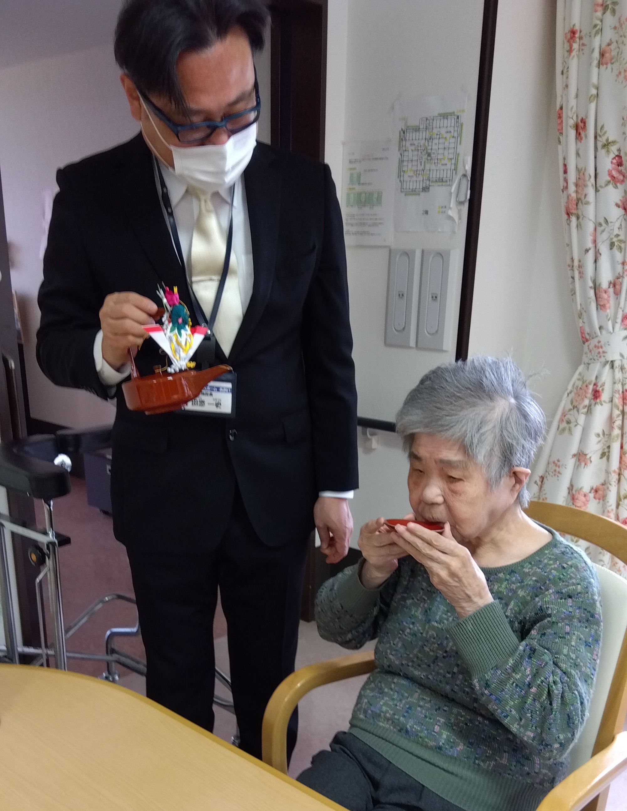 施設長が入居者全員にお屠蘇を振る舞われました。